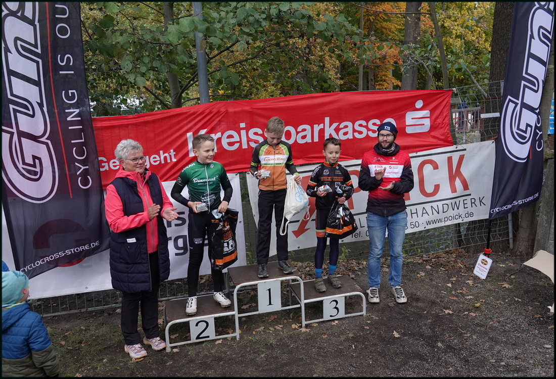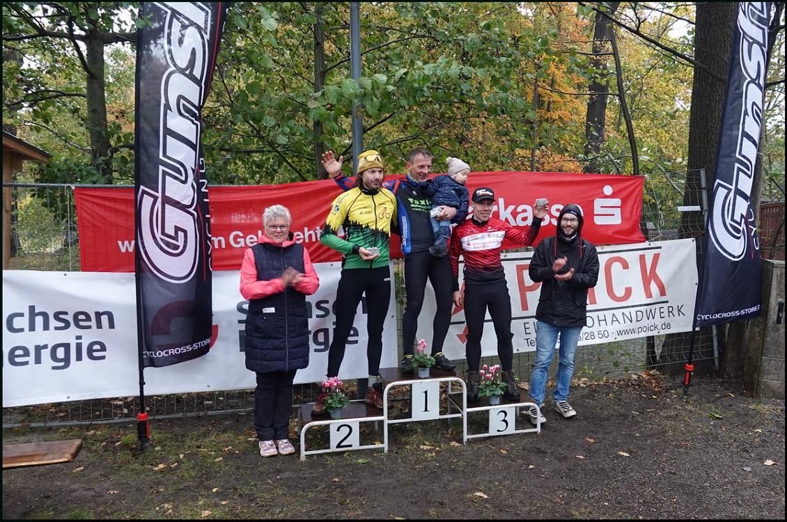 Die Ehrung der Masters 3 mit Silvio Hauschild als Dritten war schon unangenehm feucht und stürmisch. Der Sieger ist Jan Bretschneider, Zweiter Sebastian Eisold.